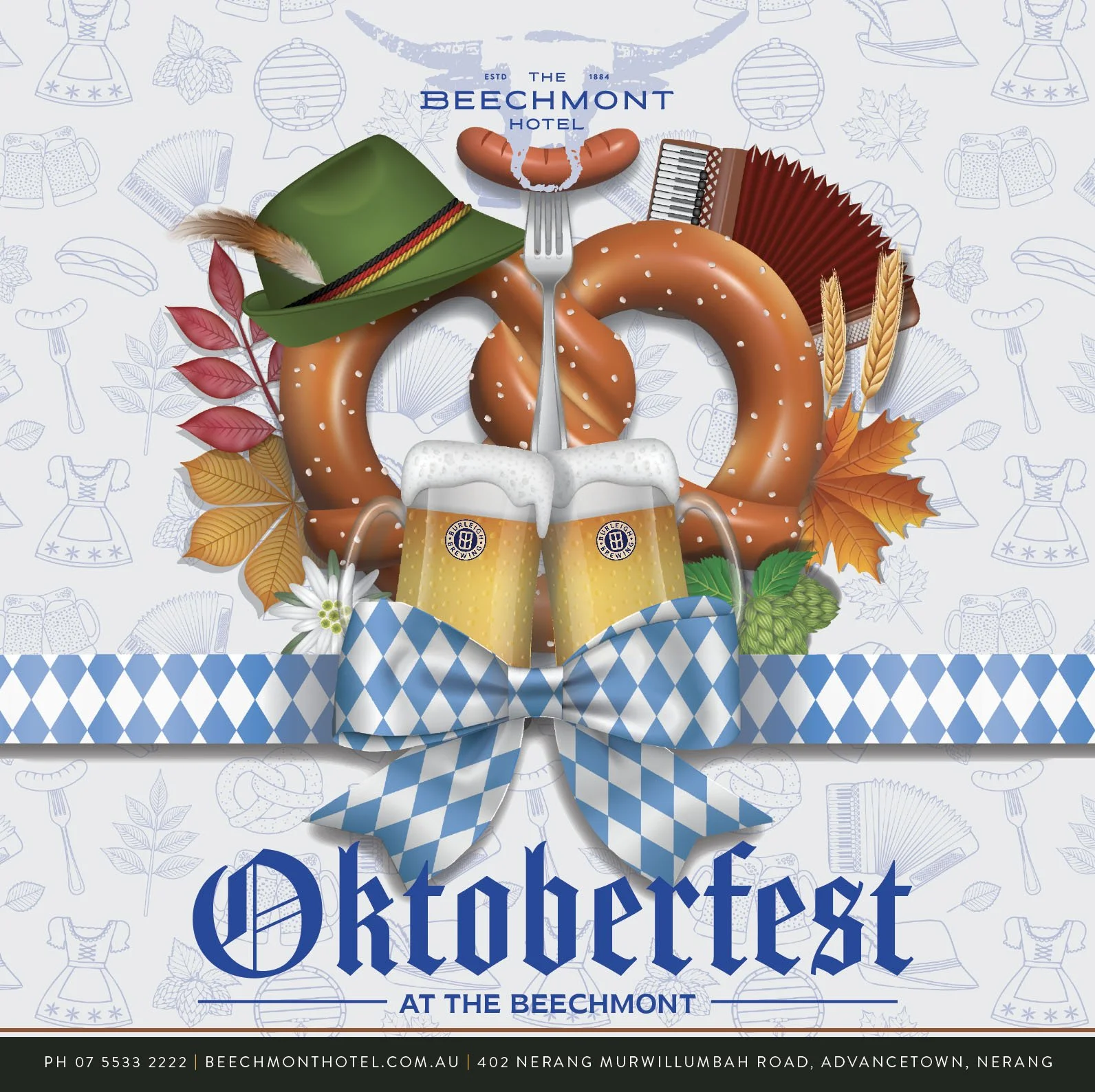 Join us all month long as we bring authentic German spirit and excitement to The Beechmont! Sip on a variety of traditional German brews from ‘Burleigh Brewing’, and indulge in hearty, delicious German cuisine that will satisfy every craving.